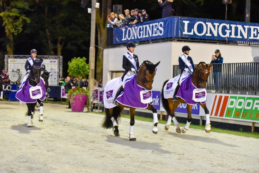 A equipe dos Estados Unidos ganhou o CDIO5*, realizado em Roterdã, na Holanda. Kasey Perry-Glass com Dublet, Laura Graves com Verdades e Olivia LaGoy-Wetz com Lonoir venceram sete países na competição e levaram o ouro.