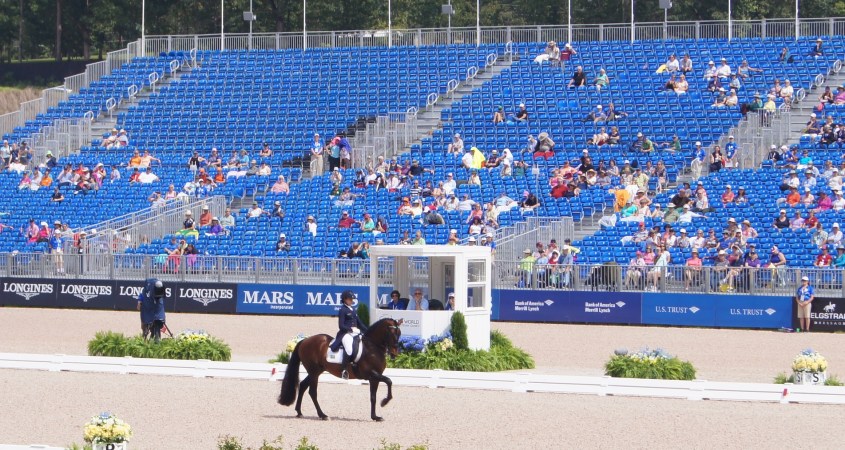 TRYON, EUA — Em sua estreia nos Jogos Equestres Mundiais (WEG), Giovana Prado Pass, montando Zingaro de Lyw, terminou a prova de grande prêmio com porcentual final de 65,217%, nesta quarta-feira (12/9) Ainda que a nota não tenha sido a esperada pela atleta, ela bateu o recorde de conjuntos brasileiros em WEG — até então, a maior nota havia sido 63,843%, de João Victor Marcari Oliva, com Signo dos Pinhais, a edição passada na Normandia.