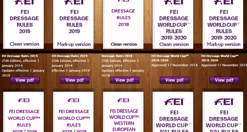 Após a Assembleia Geral da Federação Equestre Internacional (FEI), realizada em Manama, capital de Barém, de 16 a 20 de novembro, que aprovou modificações nas regras de adestramento, o novo regulamento foi publicado no site da FEI. As mudanças começam a valer em 1º de janeiro de 2019.