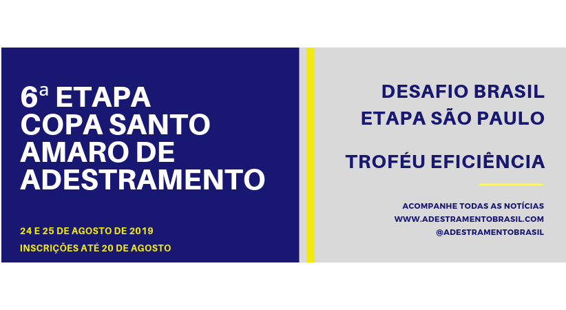 ATUALIZADA – A sexta etapa da Copa Santo Amaro de Adestramento, batizada de 3[SEG], valerá para o Troféu Eficiência, da Federação Paulista de Hipismo, e também para o Desafio Brasil. A prova ocorre no próximo dia 24 de agosto e as inscrições devem ser feitas até dia 20 de agosto.