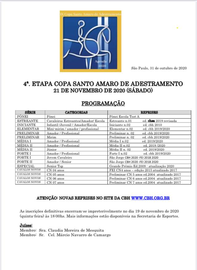 4ª etapa da Copa Santo Amaro de Adestramento — CHSA (SP) => Programa | Ordem de entrada | Resultados