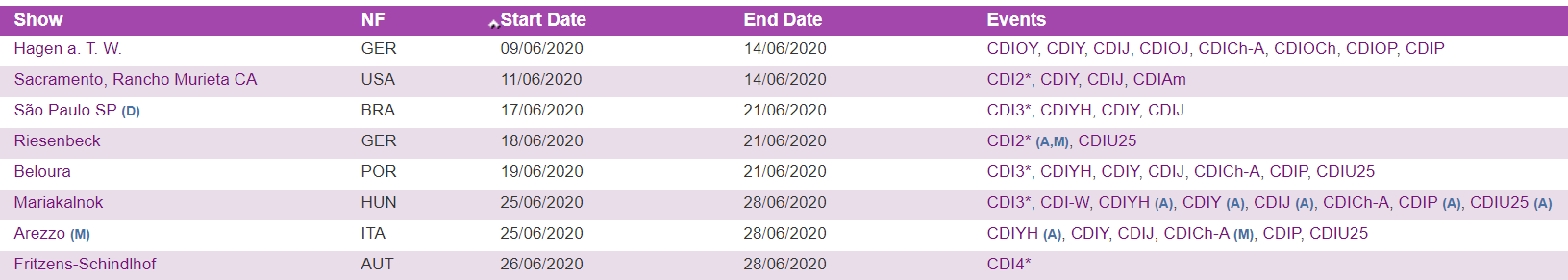 No calendário da CBH não consta, contudo, o concurso internacional (CDI3*, CDIYH, CDIY, CDIJ) que está previsto na agenda da FEI para de 17 a 21/06.