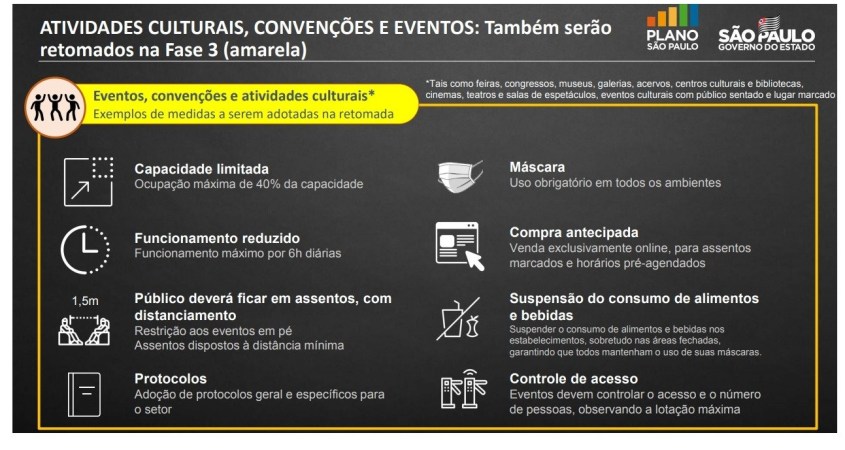 Segundo apurou este noticiário, as provas poderão ocorrer desde que sejam realizadas nas regiões em amarelo, de acordo com o Plano SP. Permanecendo na fase amarela ou progredindo para a verde, a região passa a poder sediar competições uma vez que respeite as orientações de distanciamento social, de higiene, sem aglomeração, com testagem, aferição de temperatura etc. Caso a região regrida, as competições são proibidas.