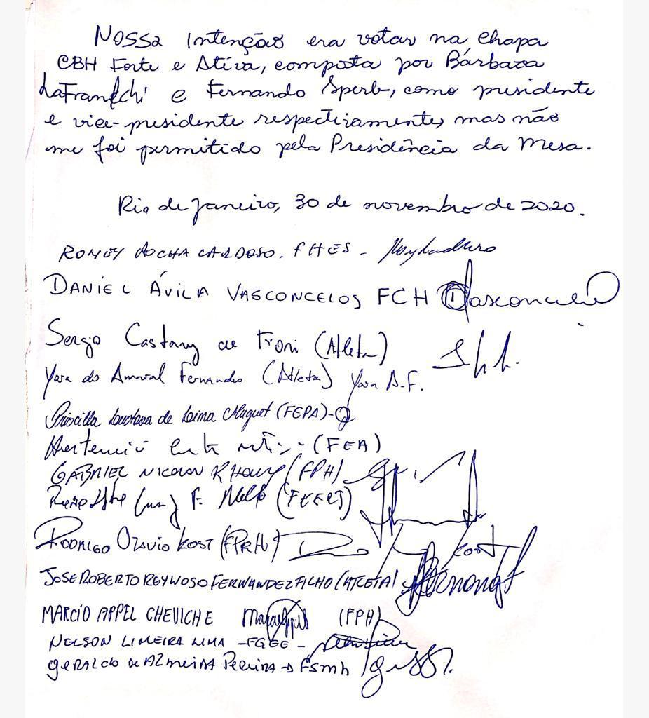 - Assinatura dos que manifestaram intenção de votar na chapa CBH Forte e Ativa