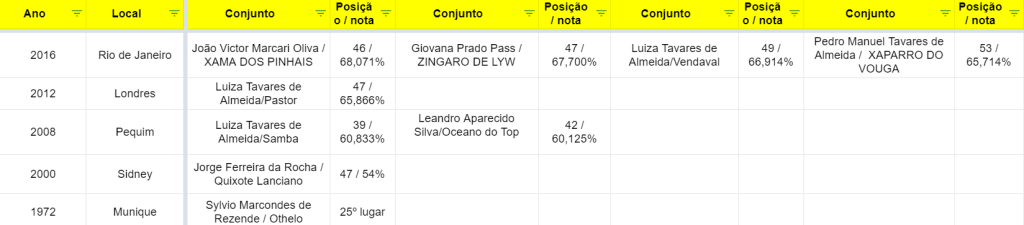 Adestramento Brasil compilou o desempenho dos atletas e dos países em diversas edições de Jogos Olímpicos. Confira aqui a tabela completa.