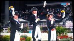 Se, antes do intervalo de 60 minutos, ao término dos grupos um e dois, a Grã-Bretanha levava a melhor à frente dos Estados Unidos para a medalha de prata, após a apresentação de Cathrine Dufour, Charlotte Dujardin e Sabine Schut-kery, o cenário mudou. A Alemanha, que buscava a 14ª medalha de ouro por equipes, confirmou o favoritismo e Dorothee Schneider, Werth e Jessica von Bredow-Werndl subiram ao lugar mais alto do pódio. A prata ficou com os Estados Unidos e o bronze, com a Grã-Bretanha. Saiba como foi a competição.