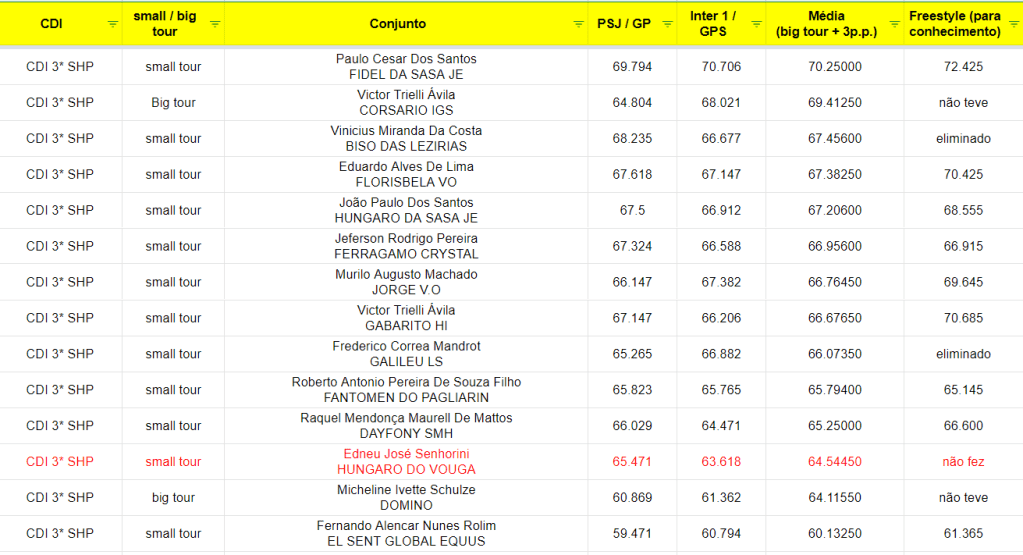 Na avaliação de Sergio de Fiori, diretor de adestramento da Confederação Brasileira de Hipismo, o CDI 3* da SHP mostrou que os conjuntos estão caminhando para subir um pouco mais as notas. Ele disse acreditar que, quando o processo seletivo terminar, o Brasil contará com uma equipe muito competitiva. “Tivemos um número muito bom de inscritos, o que é importante. O rendimento foi bom e o clima geral foi de muito fair play, algo essencial para formar uma equipe”, ponderou.
