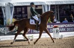 Charlotte Fry, do Reino Unido, ganhou outra medalha de ouro: no Campeonato Mundial de Cavalos Novos, ela levou Kjento (Negro x Jazz) à vitória na categoria 7 anos. O expressivo garanhão preto KWPN criado por A.J. van Os e de propriedade da Van Olst Horses fez 85,786%, tendo obtido um dez para trote. O segundo degrau do pódio foi conquistado por Destello OLD (Dimaggio x Furst Fuegger) com 83,957% e o terceiro ficou com Escamillo (Escolar x Rohdiamant) e 83,072%.