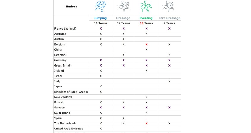 Até o momento, 21 nações se qualificaram para competir por equipes para os Jogos Olímpicos e Paraolímpicos de Paris 2024 nas categorias de salto, adestramento, CCE e paradressage. A França está automaticamente qualificada em todas as disciplinas como país anfitrião, ao lado da Bélgica, Alemanha, Grã-Bretanha, Holanda e Suécia, que também qualificaram com sucesso equipes em todas as quatro modalidades. O Brasil tenta vagas para adestramento, salto e CCE no Pan de Santiago e está à frente do Canadá no ranking que dita qual país competirá em paradressage.