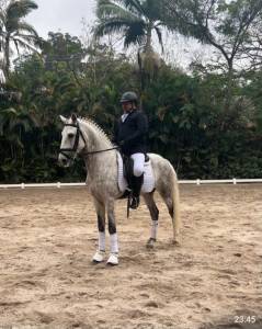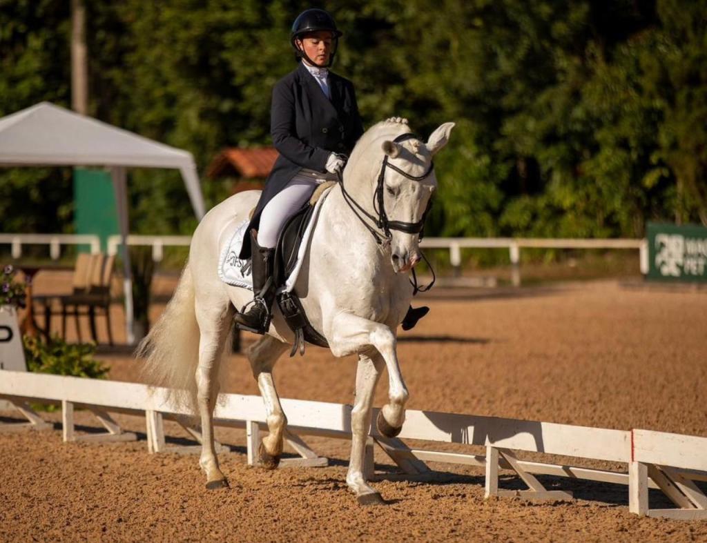 “2023 foi um ano de crescimento com o Protécnica Luar dos Diamantes. Ele completou um ano competindo em setembro, então, foi seu primeiro ano de provas. Ainda temos muito a evoluir pela frente. Ele amadureceu bastante; está, de modo geral, bem mais habituado e relaxado no ambiente de competições, apesar de ser um cavalo bem quente, sensível e talentoso. Eu acho que consegui evoluir como amazona, montei vários cavalos diferentes e o Luar, em especial, é um cavalo que exige de mim uma evolução constante, por ser um animal muito fino e inteligente. E também para mim é uma grande honra e uma alegria ser a primeira vencedora do Troféu Perpétuo Orlando Facada [em 2022] e ter meu nome e o do Zephiro inscritos nele.”