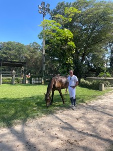 “É um privilégio ganhar, com Novelo e Quatrina, a copa que leva o nome do primeiro cavaleiro brasileiro a conquistar medalha individual em Pan-Americanos e também o mestre de muitos cavaleiros e amazonas atualmente na ativa. O ano de 2023 foi uma retomada às competições. Encerrei 2019 com excelentes resultados e deixei as pistas devido à pandemia e a intercorrências de saúde. Retomei neste ano, tendo reestruturado os treinos, ainda não alcançando a mesma performance, mas em constante evolução visando sempre o bem estar dos cavalos. Com Novelo, busquei trabalhar uma maior flexibilidade e harmonia de movimentos. Claro que o resultado é gradativo e ele vem melhorando diuturnamente. Posso afirmar, sem dúvidas, que hoje ele é um garanhão mais feliz. Com a Quatrina foi um pouco mais complicado… 2021 foi um ano delicado devido à uma cirurgia de cólica. Voltou a trabalhar em 2022 e às pistas neste ano.”