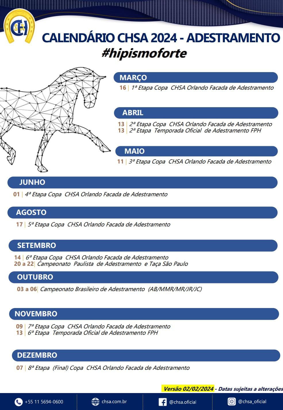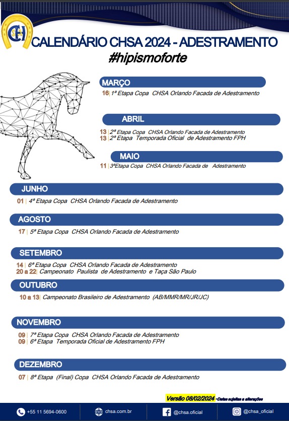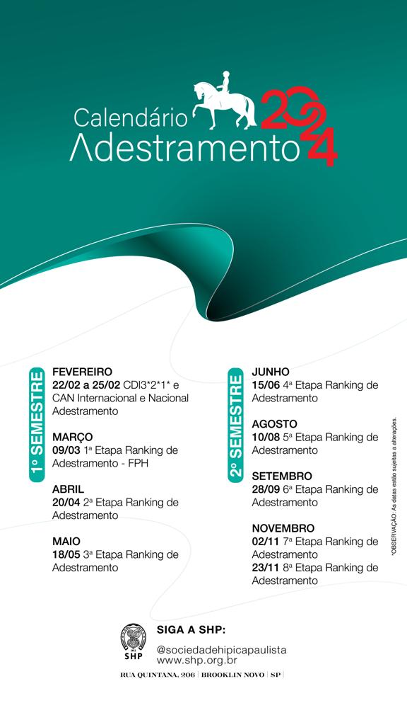 28 de setembro— SHP (São Paulo) – ADIADO – EHV-1 (comunicado)6ª etapa do Ranking de Adestramento da SHP