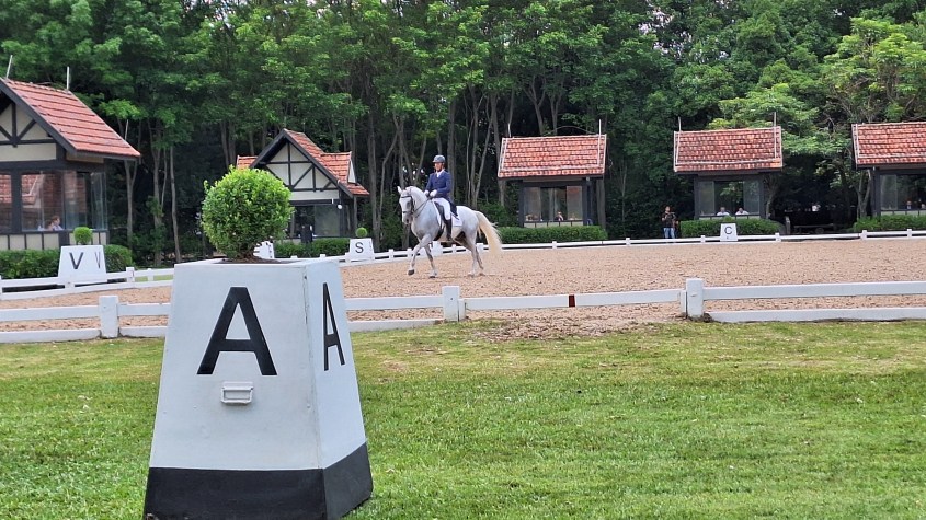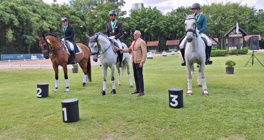 Júnior também teve outra estreia. Ele entrou em pista montando Panadero MFE VII, um pura raça espanhola (PRE), raça que volta a competir no Brasil depois de cerca de 20 anos. Esta, aliás, é a aposta da criação do Cariama, que importou animais da Espanha. “Foi uma estreia muito boa em quatro anos; é um cavalo sensacional, concentrado. Ele entregou tudo que eu estava pedindo”, contou. Com o Panadero, o foco é competir em CANs em cavalos novos quatro anos.