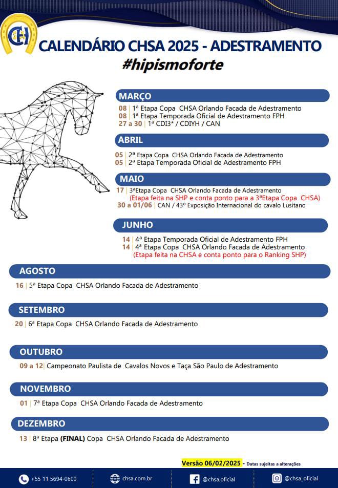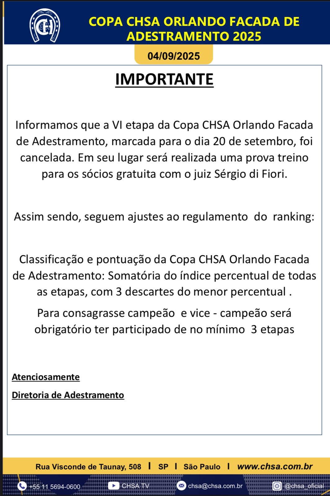 1º/11— CHSA (São Paulo) CANCELADA6ª etapa da Copa CHSA Orlando Facada de Adestramento => Programa |