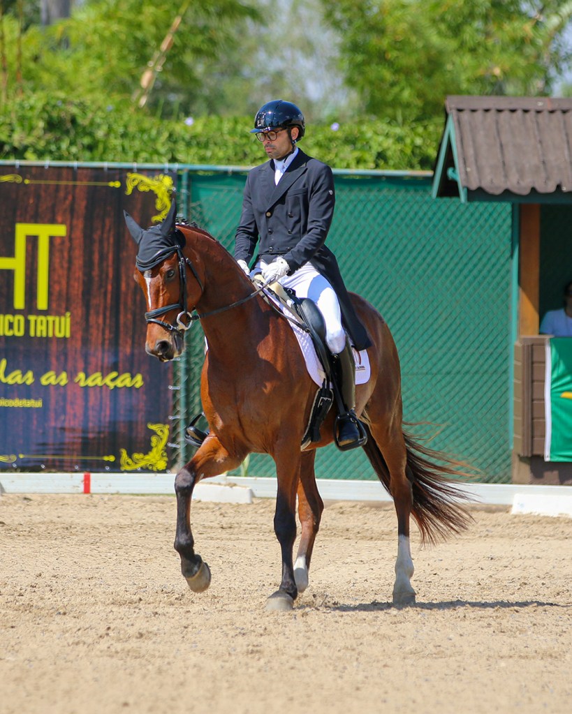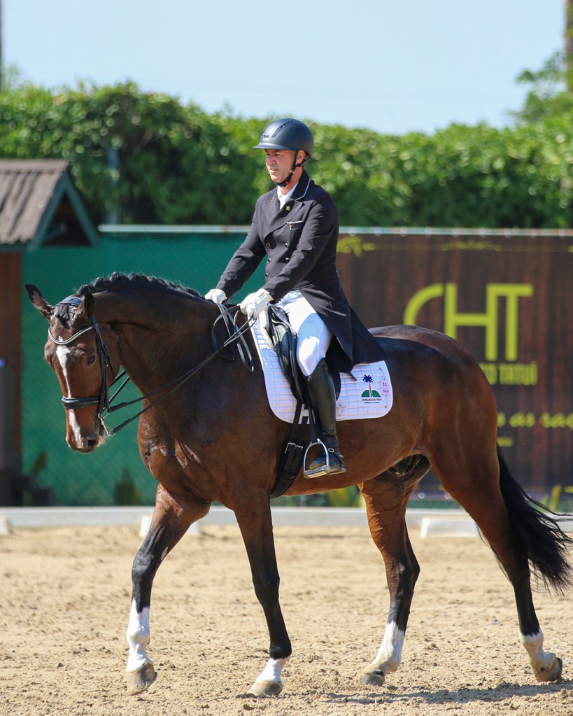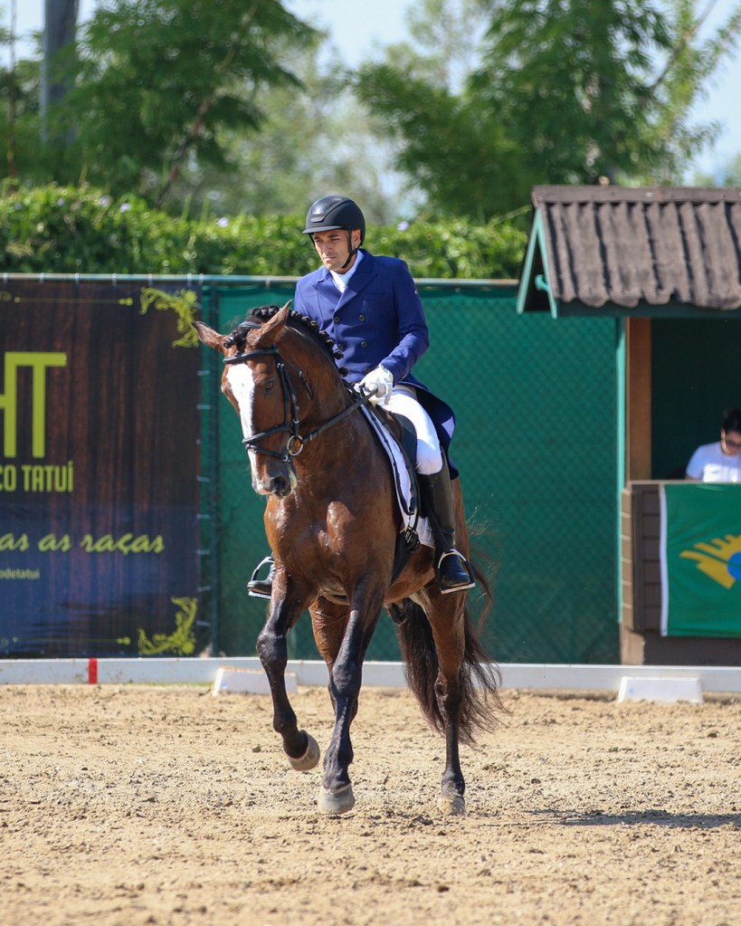 “Estou muito feliz com a evolução dele; não é um cavalo fácil, é um cavalo dificílimo de montar, foi um cavalo que eu mesmo iniciei do zero, como todos os meus cavalos, mas ele é complicadíssimo, nervoso, estressado e bravo, mas muito talentoso”, avaliou. Cris acumula médias de 67,412% no CDI do CHSA e 66,559% em Tatuí.