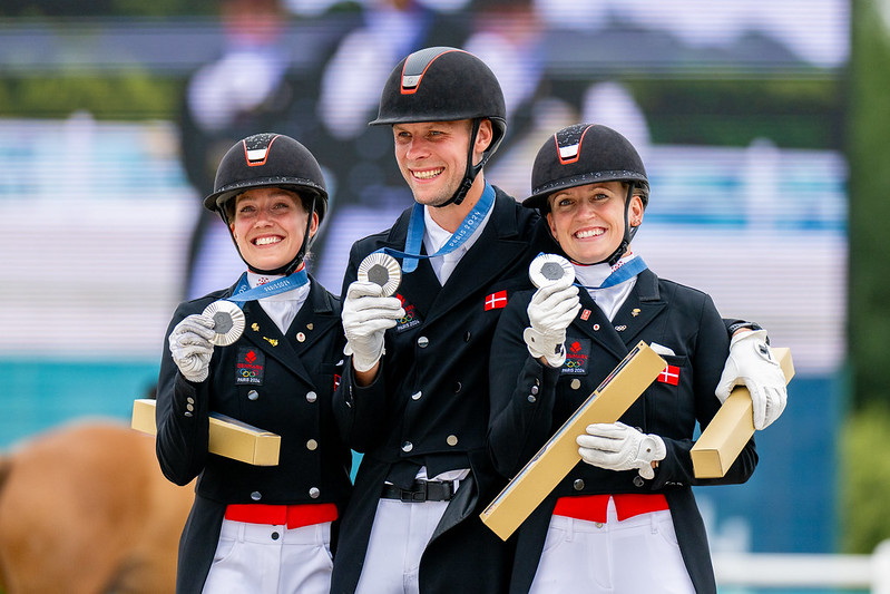 Alemanha conquista 15º ouro olímpico; Dinamarca fica com a prata e Grã-Bretanha é bronze — Foi por muito pouco que a Dinamarca não conquistou o inédito ouro olímpico nos Jogos Olímpicos de Paris, mas Cathrine Laudrup-Dufour com Freestyle, Daniel Bachmann Andersen com Vayron e Nanna Skodborg Merrald com Zepter fizeram história ao assegurar a primeira medalha de prata para o país. E, pela 15ª vez na história dos Jogos Olímpicos, a atual campeã Alemanha levou, mais uma vez, o ouro por equipes, com Isabell Werth (Wendy), Frederic Wandres (Bluetooth OLD) e Jessica von Bredow-Werndl (TSF Dalera BB) somando a pontuação vencedora de 235,790, apenas 0,121 ponto porcentual a mais que a Dinamarca. O bronze ficou para a Grã-Bretanha.