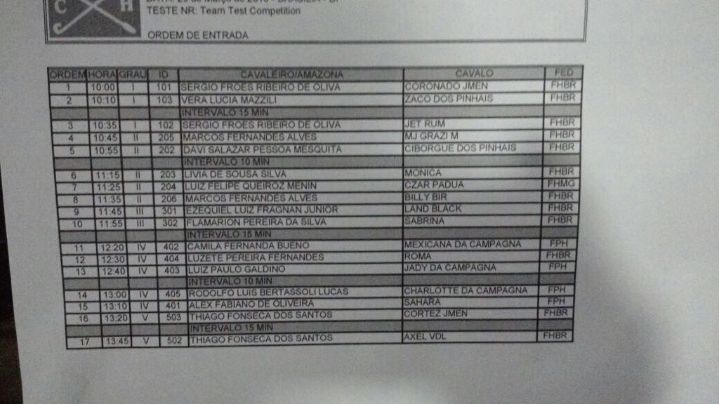 Campeonato brasileiro paraequestre — Centro Hípico do Gama (Distrito Federal) => Programa | Ordens de entrada: 23/março / 24/março| Resultados (link página CBH)