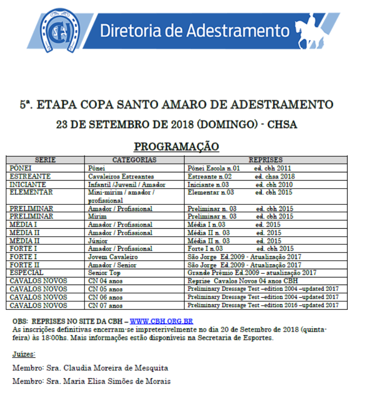 Fontes: clubes | FPH | FPH – paraequestre | Fprh | CBH – adestramento| CBH – paraequestre