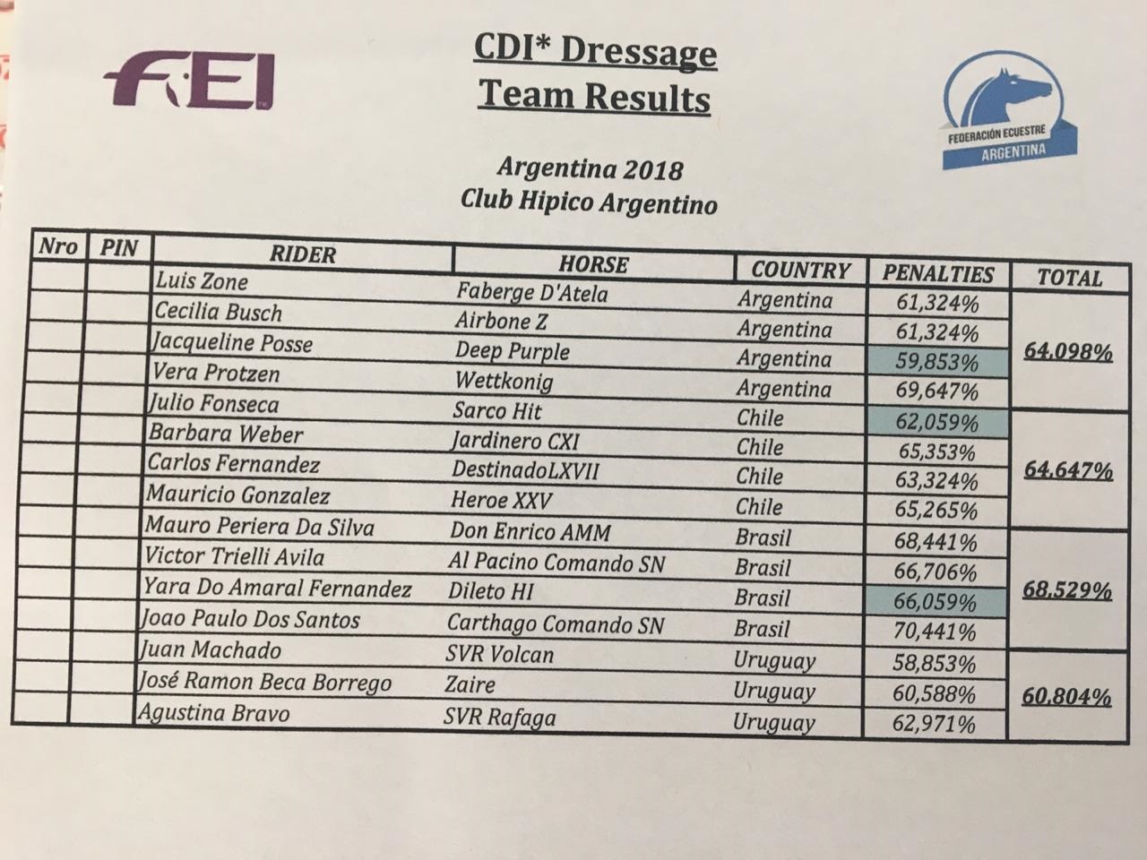 Campeonato Paranaense de Adestramento — Haras Adal (PR) => Resultados