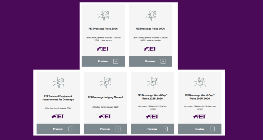 Inclusão de política de maus-tratos a cavalos e salvaguarda contra assédio por parte de todas as federações nacionais nas disposições em seus regulamentos. Esclarecimento acerca do uso de telefones celulares e outros dispositivos eletrônicos durante a prática equestre, incluindo, a proibição de segurar um telefone celular e/ou qualquer dispositivo eletrônico similar junto à orelha ou de fazer chamadas enquanto estiverem na área de aquecimento. Esses são alguns pontos do regulamento geral da Federação Equestre Internacional, válido para todas as modalidades a partir de 1º de janeiro de 2026. Depois de apontar as principais mudanças do regulamento de adestramento, Adestramento Brasil traz destaques do regulamento geral.