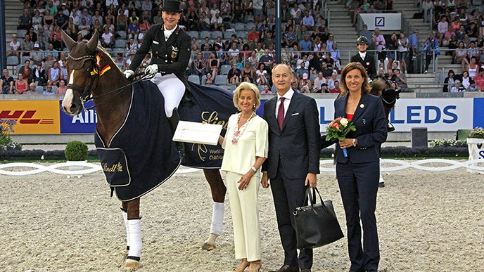 Isabell Werth colocou Bella Rose no lugar mais alto do pódio após conquistar 80,149% na prova de grande prêmio especial do CDI 4* do Prêmio Lindt do CHIO Aachen. A competição, disputada nessa sexta-feira (20/07), contou com dez conjuntos. Jessica von Bredow-Werndl e a égua KWPN Zaire-E ficaram na segunda colocação com 72,702%. Leia mais