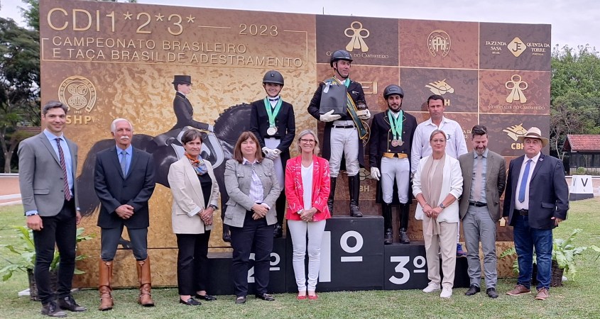 Dois dos três conjuntos que competiram na prova de grande prêmio do CDI 3* do Campeonato Brasileiro sênior top pontuaram acima dos 67%. Trata-se de uma marca que sempre está no alvo dos brasileiros por ser a linha de corte para compor os requisitos mínimos de elegibilidade (MER) para Jogos Olímpicos em temporadas de seletivas. Nesta sexta (25/10), Joana Marie Sliwik ganhou o GP com Intef Interagro com 67,326% e Murilo Augusto Machado, montando Jorge V.O., ultrapassou a marca pela segunda vez, ao pontuar 67,022% no geral. O CDI 3* teve ainda a estreia de Adriano Soares com Jogador do Drosa no GP.