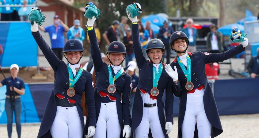 Quillota, Chile — A equipe formada por Beatrice Boucher montando Summerwood’s Limei; Camille Carier Bergeron com Sound Of Silence 4; Mathilde Blais Tetreault com Fedor e Naima Moreira Laliberte com Statesman ganhou a medalha de bronze nos Jogos Pan-Americanos de Santiago. Foi, segundo as cavaleiras, uma longa jornada de seletivas, começando em janeiro e a medalha consagrou o trabalho duro para chegar até o pódio.