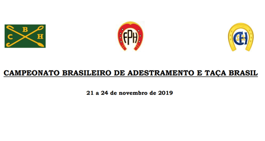 A Confederação Brasileira de Hipismo (CBH) divulgou o programa do Campeonato Brasileiro e da Taça Brasil de Adestramento que ocorrem de 21 a 24 de novembro no Clube Hípico de Santo Amaro. Conforme consta no programa, a título de ajuda custo, a CBH arcará com a taxa de estabulagem dos animais provenientes das entidades de fora da capital de São Paulo.