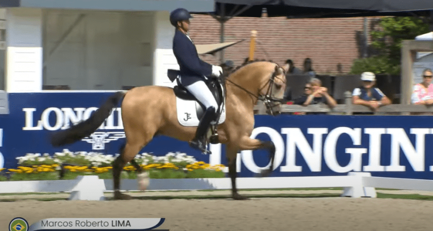 Competindo na small final de seis anos — uma repescagem na qual os três conjuntos mais bem colocados passaram para a final do Campeonato Mundial de Cavalos Novos — Onesto da Sasa Horses, montado por Marcos Roberto Lima, fez 72,200% e ficou em 25º. Ele foi o único animal a competir pelas cores da bandeira do Brasil. Na sela João Victor Marcari Oliva, mas representando Portugal, Mantovani’s Orion de La Gesse somou 70,800% classificando-se em 26º.